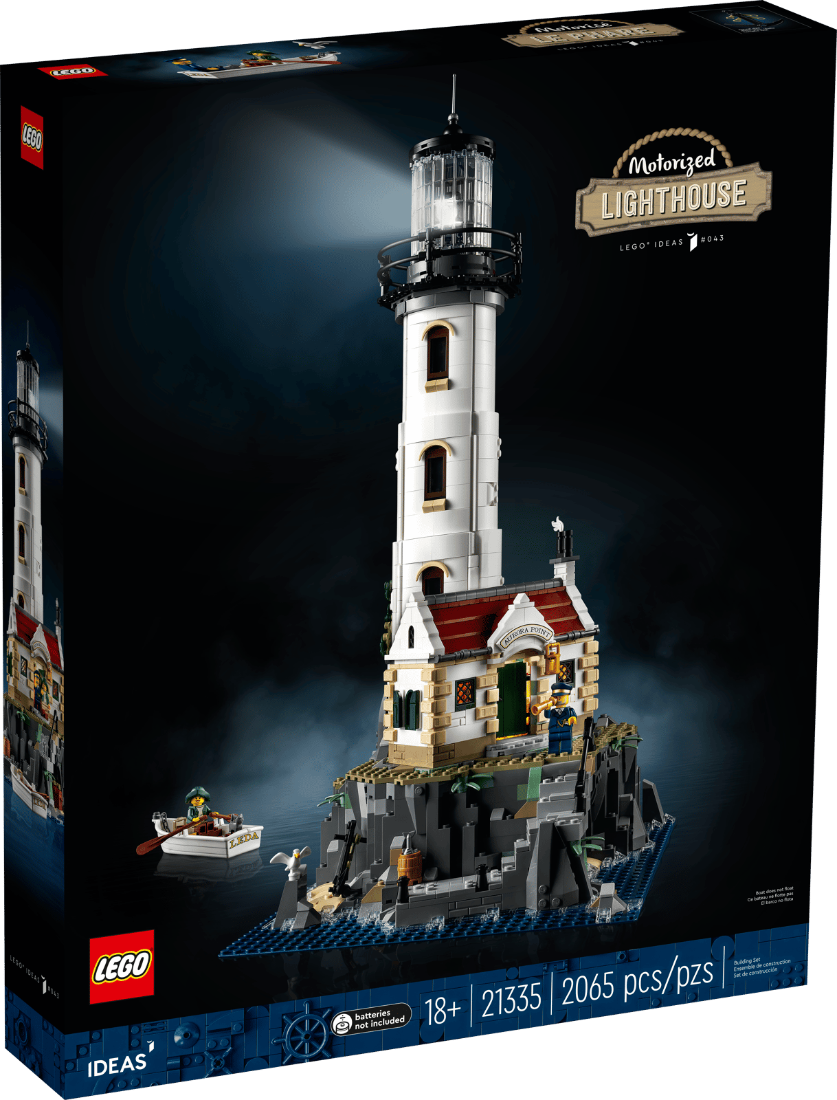 De LEGO Ideas 21335 Gemotoriseerde Vuurtoren is ontworpen door een LEGO fan en gekozen door de community. De set bevat een realistisch vuurtorenmechanisme met motor en lichtkabel waardoor het licht echt ronddraait.